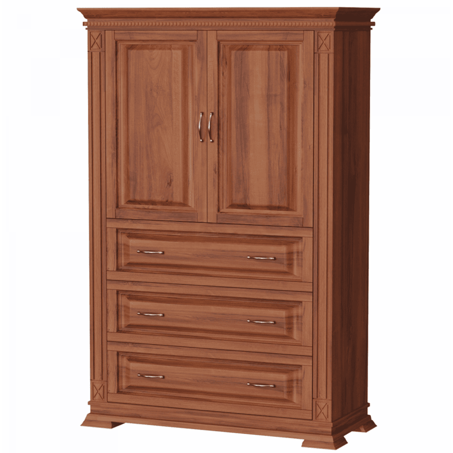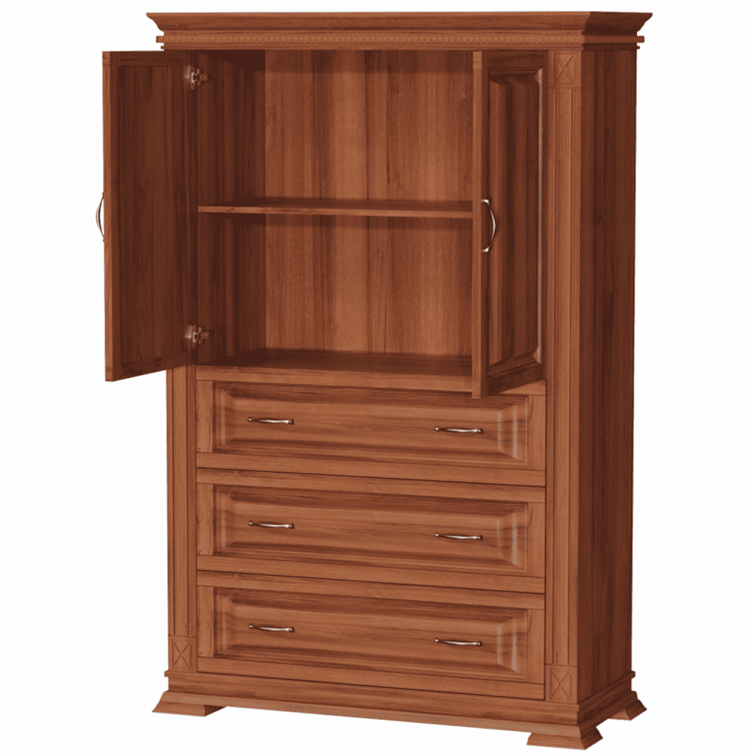 Деревянный шкаф Верди 106 выполнен из массива сосны,в данной модели вы можете самостоятельно указать цвет и материал,выбрав соответствующую опцию.